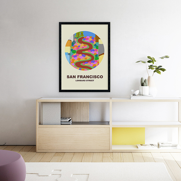 San Francisco Lombard St, california, city art, digital, illustration, art print