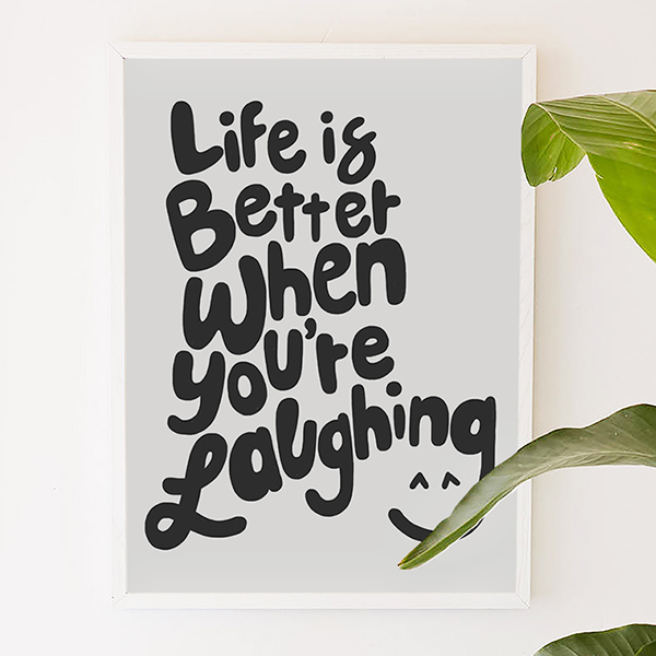 Life is better when you are laughing, quotes, typography, digital, illustration, art print